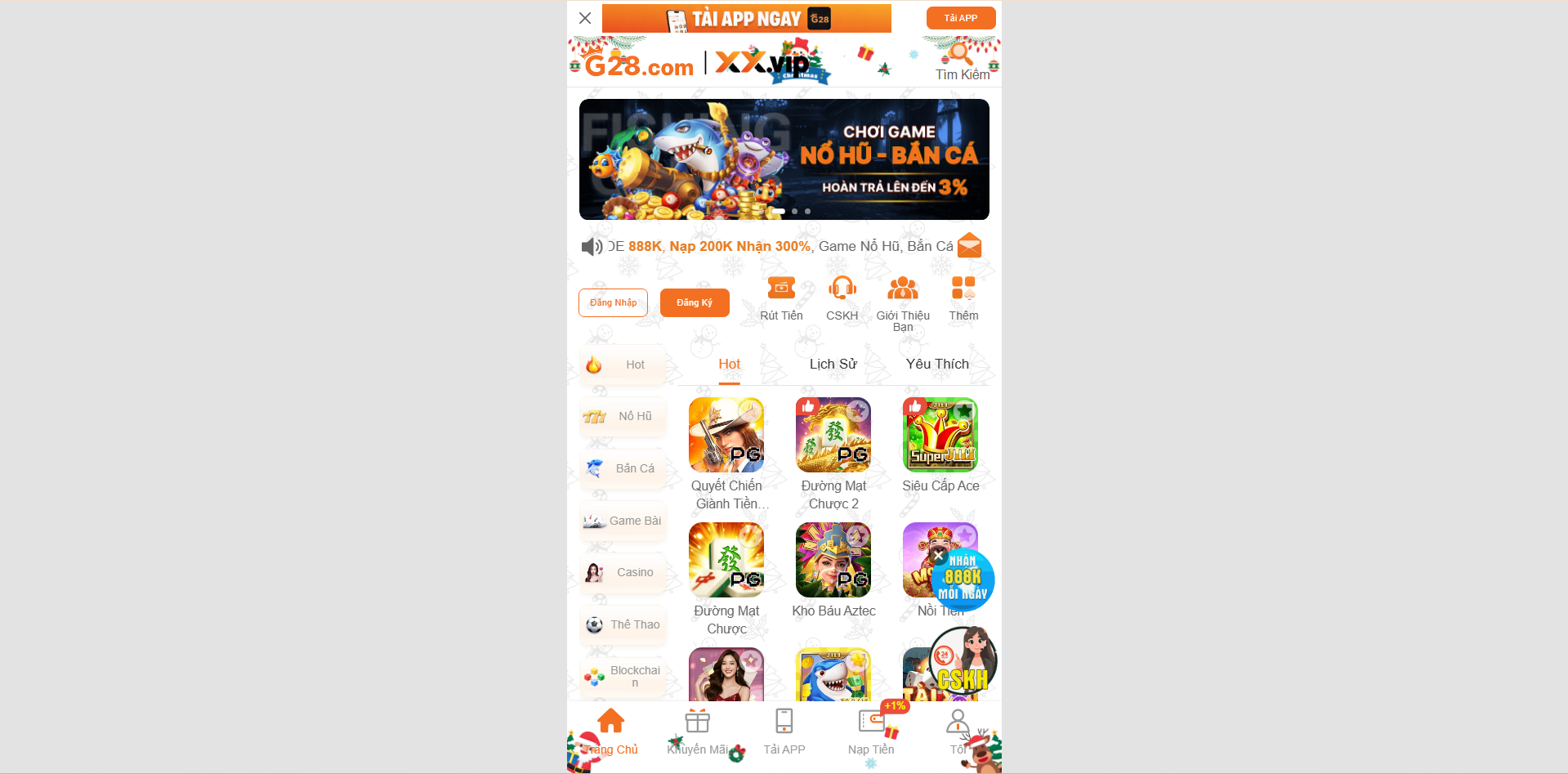 Sảnh Live Casino gồm Baccarat, Roulette, Blackjack phát sóng trực tiếp. Ngoài ra, hệ thống slot game, bắn cá đa dạng giúp người chơi vừa giải trí vừa săn thưởng hiệu quả.